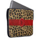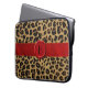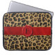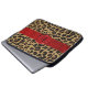 スタイリッシュな15"茶色および黒い斑点を付けられたジャガーの毛皮パターンでされるラップトップの箱。 リボン、黒い手紙のモノグラム1つ備えている赤いワックスのシールが付いている中間を渡る操業を、見る赤いサテンのグラフィック。 あなた自身のためのまたはpurrrfectのギフトのアイディアとしてモノグラムを個人化して下さい。