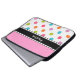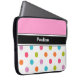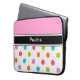 多彩な水玉模様が付いているピンクのモノグラムのラップトップの箱およびあなたの名前またはイニシャルのための宇宙。 スタイルのあなたのモバイル・コンピュータを保護するためのジッパーの上が付いているかわいいラップトップの箱。