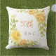 モノグラムエレガント黄色い花のリース結婚の50th屋外の枕。白い背景エレガントを持つ黄色い花のリース。真ん中にカスタマイズモノグラムを入れろ。50周年記念の贈り物結婚用に特別に設計。早く手に入れ!