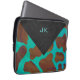 モノグラムカウブラウンおよびティール(緑がかった色)プリント ラップトップスリーブ