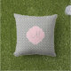 モノグラムグレーホワイトとパステルピンク水玉模様 クッション