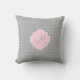 パステルモノグラムのピンクのアクセントの正方形の枕と灰色の水玉模様パターンに白。デザインは白と灰色の水玉模様パターンとパステルピンクのクアトレフォイルの形状を特徴とあなたのイニシャルカスタム。