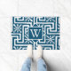 モノグラムコンテンポラリーギリシャ鍵モダンデザインブルー ドアマット