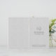 モノグラムシルバーローレルリースグレーレザーバイフォールドパンフレット。