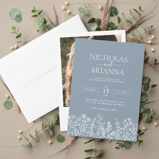 モノグラムダスティブルーミニマリストエレガントな結婚式 スクエアペーパーコースター