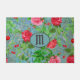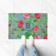 モノグラムティール(緑がかった色)パリウォーターカラーフラワーズドアマット ドアマット