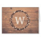 素朴な木製の背景にリースと雪の装飾とクリスマスのためのモノグラムデザイン