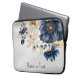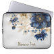 モノグラムネームネイビーブルーホワイトゴールデンフローラ ラップトップスリーブ