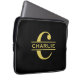 モノグラムパーソナライズされたと名前ブラックと金ゴールド ラップトップスリーブ