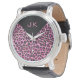 モノグラムヒョウ黒とホットピンクプリント 腕時計