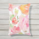 ピンクモノグラムのとオレンジのフローラ屋外装飾用クッションは、デッキ上、ヤードまたはプールで。
