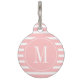 モノグラムモダン付きピンクと白ストライプの ペット ネームタグ
