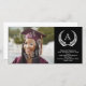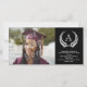 この白黒カスタムの卒業式または汎用の商品の照葉樹リースクラウン要素の内部にパーソナライズされたイニシャルモノグラムを追加する。月桂樹のシルエットと文字葉のイニシャルを含む黒い背景独身の。