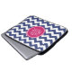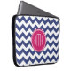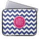 モノグラム付きシェブロン模様 – ネイビーマゼンタ ラップトップスリーブ