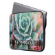 モノグラム名ミントグリーンピンクのサボテンの写真モダン ラップトップスリーブ