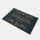 モノグラム新婚パーソナライズ名ブルー金ゴールド ドアマット