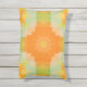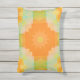 暖かい晴れモダンたオレンジ、黄色と新鮮な緑に幾何学的な模様を特徴とする枕。モノグラム文字は任意である。