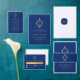 モノグラム王室のブルーフェイクゴールドフォイル結婚クレスト メニュー