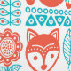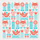 モノグラム |フィンランドのキツネ&バードフォークアートパターン 壁紙