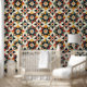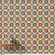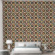 赤伝統的、オレンジ、黄色、緑、黒、クリーム色のモザイクのタイルのアート