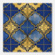複雑なスクロール王室のワークと金色のアクセントを持つ青と金ゴールドのモロッコのタイルデザインを示す壁紙。左右対称のモチーフはムーア様式の建築の影響を反映し、構造と構造の両方華美の外観を作成する。深いブルーの背景コントラストと豊かな金ゴールドのディテールを印象的な、装飾的な美学。モロッコと描スタイルに最適な地中海の、マキシマリストのインテリア、壁に深さとエレガンスを追加する豊かな詳細なパターン。折衷的なリビングルームのアクセント壁、またはboho寝室の焦点の壁に最適。これ想像は暖炉のある宇宙の中で、火の光の中をキラキラと光る!