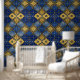 モロッコトレリスパターンクローバーブルー金ゴールド 壁紙