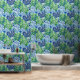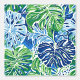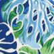 白い背景に青と緑のモンステラ葉のを使用したシームレスなパターン。デザインは手の外観色彩の鮮やかと混ぜクール合わせ、自然なトーンを持ち、新鮮でトロピカルな効果を鮮やか生み出す。