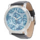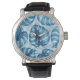 モンステラ水彩模様ブルー 腕時計