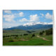 牧場道は西部のモンタナの静かな雪をかぶった山の方に遠くに巻きます。