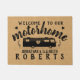 この田舎の家のドアマットに家名を追加します。背景にはごちゃ混ぜになり、黒フェイクいシルエットが付いています。RVerに最適です。ハート付きのオートホームの写真と「Welcome to Our Motorhome」という言葉に加え、2行の文字が含まれカスタムます。2つのドアマットサイズから選択します。