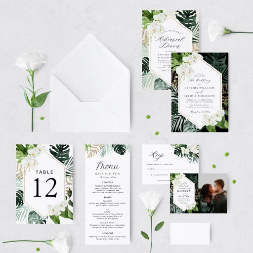 ヤシ熱帯フローラ幾何学結婚式招待状 招待状