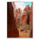 アーチ国立公園の砂岩フィンの間の狭い通路は、この秘密の中庭につながる。カードの裏にはアーチ国立公園の繊細なアーチがある。アーチのすぐ下に赤い小さな人が見える。繊細なアーチを描いたカードは以下の通り。