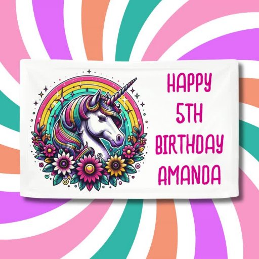 ユニコーンカラフルをテーマにした少女の誕生日パーティー 招待状
