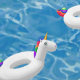 水に浮か飾る可愛いインフレータブルユニコーンのプール玩具とバスやパウダールーム。