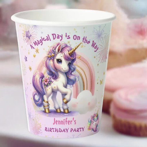 ユニコーン6誕生日ガールパープル金ゴールドレインボー 招待状