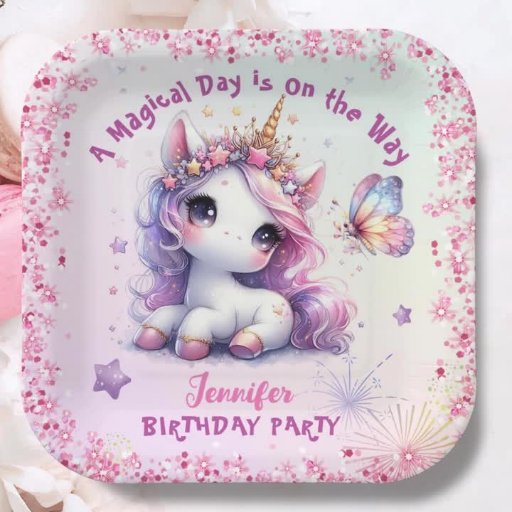 Unicorn 8th Birthday Party Girl Pink Purpleデザイン: H-Art Studio Design