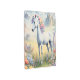 花の畑に立つ虹のマネを持つ白いユニコーンの夢のようなイメージを示す金属製のプリント。背後には山威厳のあるがある。魔法と神秘的なユニッ与えクスを愛する人々への完璧な贈り物。生成内容を含む。