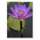 王冠のような紫色の蓮と夜の避難所を探している小さな緑のカエル