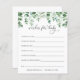 あなたのシャワーのゲストがあなたの赤ちゃんシャワーでベビーカードのためのこれらの愛らしい願いを記入する。緑とユーカリのイラストレーションをフィーチャー。Mommy-to-beの名前とシャワーの日付でパーソナライズ。