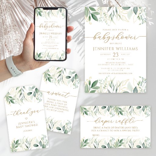 Greenery Eucalyptus Gold Baby Showerデザイン: Ramune Freze