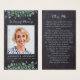 カルボ素朴ードユーカリ悔やみや弔慰葬儀祈りの言葉カード。この素朴でエレガント記念の祈りの言葉カードは、黒板石板デザイン上のユーカリ緑地を特徴とする。フロント「愛の記憶」愛する人の写真、名前と日付、気持ちと共にこの追悼式祈りの言葉カードをパーソナライズする。戻る恋しく思の「私」の詩はパーソナライズされた、他の特定の詩とデザインを望むもしに手を差し伸べなさい。この記念祈りの言葉カードは大切な記念碑であり、葬儀や生活のお祝いに使われる。COPYRIGHT © 2020 Judy Burrows, Black Dog Art - All Rights Reserved.ユーカリ素朴プトゥス記念葬儀祈りの言葉カード