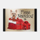 赤いヨークシャーテリアの袋に毛皮を敷き、金ゴールドを飾った赤い弓に座ったの愛らしい水彩のイラストレーションには、白と赤の二つの美しい贈り物用のプレゼントが横にあり、その上にはフラス·ナビドッグという言葉があります。かわいいデザインは、縦に2つの黒のフェイク金ゴールド背景で囲まれ縁どます。ヨークシャーのテリア好きやクリスマスに最適なこのフェスティバルシーズン。