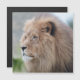 この写真では、雄のライオンが軽い背景に向かって堂々と立っている。彼の威厳のある手は彼の高貴な顔を形成し、強さと権威を醸し出す。彼の足には鮮やか緑の葉があり、獣の王と自然界の調和を象徴している