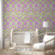 ライトグリーンのピンクと白の花のパターン 壁紙
