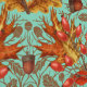 手色彩の鮮やか兎と秋の花葉草類;きのこ;どんぐりやベリー