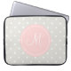 ライトグレー水玉模様ピンクカスタムモノグラム ラップトップスリーブ