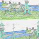 ハンドドローライトハウスのウォールカバー;ターコイズ