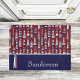 ファミパーソナライズされたリストライプのライトハウス航海のネイビーブルーグレー赤ドormat