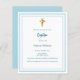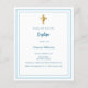 白い背景、明飾るい青のフレームと金色の十字を付けパーソナライズし、名前と詳細を追加。1枚= 1枚の招待状を印刷したエッジからエッジ