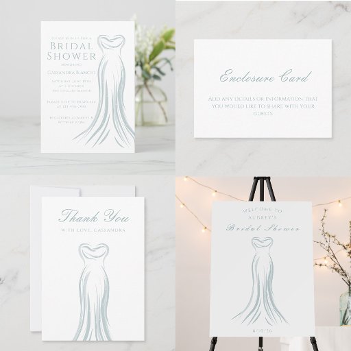 ライトブルー結婚ズのドレスサンキューカード 招待状